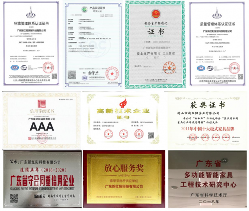 新红阳深知科技赋能产业升级是推动生产工艺和产品质量的关键所在,率先推进生产基地的智能化改造,引进先进生产设备和信息化管理系统,通过ISO9001质量管理体系、ISO14001环境管理体系、ISO45001职业健康安全管理体系认证,构建起严格的质量管控体系。这些扎实的举措,让新红阳在行业内树立了卓越的品牌形象与口碑。它不仅成为定制类伙伴索菲亚、欧派、百得胜、维尚等,成品类合作伙伴顾家、芝华仕、喜临门等,以及合作工程类的华住会、万科、中建、中冶、迪拜DANUBE PROPERTIES等中外众多知名企业值得信赖的优质合作伙伴。更在激烈的市场竞争中脱颖而出,斩获了“年度中国十大板式家具品牌”、“国家级高新技术企业”、“AAA信用企业”、“广东省工程技术研究中心”、“索菲亚标杆供应单位”等含金量十足的荣誉。